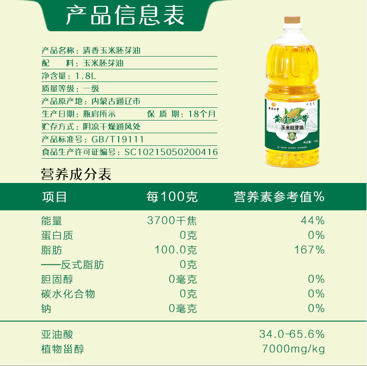 非轉基因——黃金地帶”玉米胚芽油是綠色食品,精選通遼市科爾沁區(qū)純天然、無公害的非轉基因優(yōu)質玉米為原料,是綠色的健康食用油;