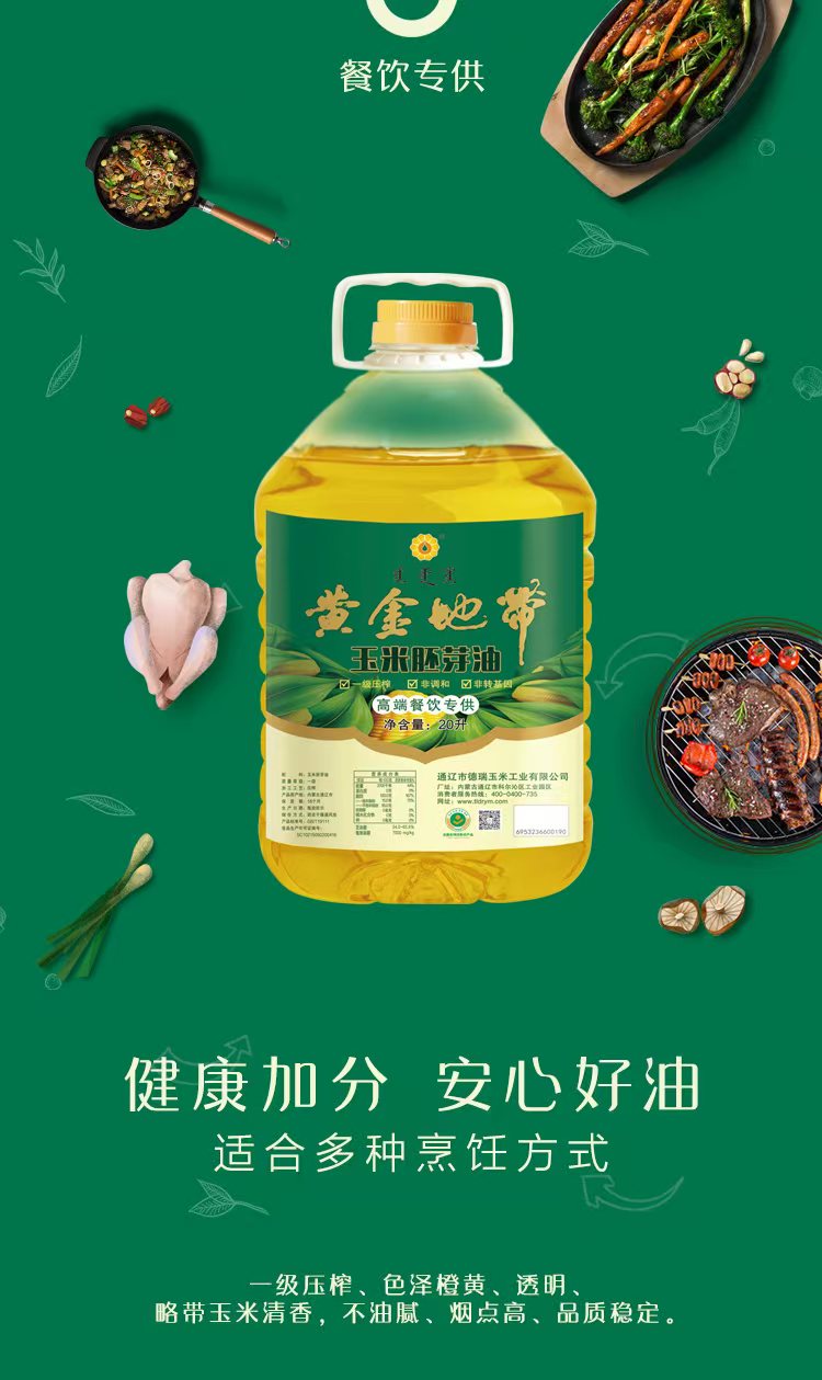 清香、透亮、少油煙——“黃金地帶”玉米胚芽油油質(zhì)清香撲鼻,色澤金黃透明,烹制菜清香純正不上火,不油膩,適用于煎、炒、涼拌,有效的保持蔬菜原有色、香、味及營養(yǎng)價(jià)值。